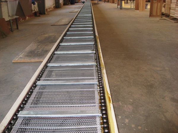 输送带的材质有:碳钢、不锈钢、热塑链,根据您的产品的需要可选取不同宽度、不同形状的链板来完成平面输送、平面转弯、提升、下降等要求。