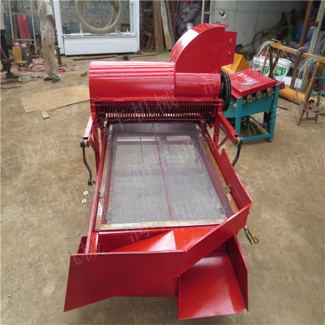 葵花脱粒机配合动力5.5KW以上电动机,柴油机,拖拉机,可与小四轮后尾轮连接,三轮车,等等。本品使用农机,用于葵花脱粒,改变了多年来手工作业的状况方便快捷。结构,使用方便,脱净率高,不裹粒,分离彻底,作业方便,不损伤籽粒的光亮度,生产效率高,适合长时间作业,每小时可脱粒800-1000千克。