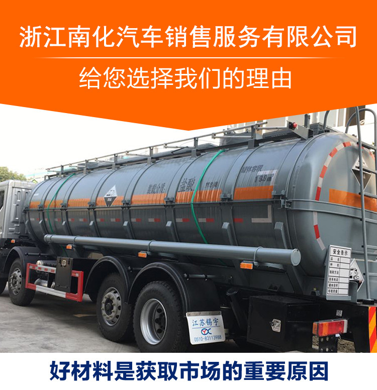 机电之家网厂家浙江南化防腐设备有限公司为您提供浙江南化 20方盐酸槽罐车 液碱 次钠 化工液罐车 腐蚀品液罐车的详细产品价格、产品图片等产品介绍信息,您可以直接联系厂家获取浙江南化 20方盐酸槽罐车 液碱 次钠 化工液罐车 腐蚀品液罐车的具体资料,联系时请说明是在机电之家网看到的。