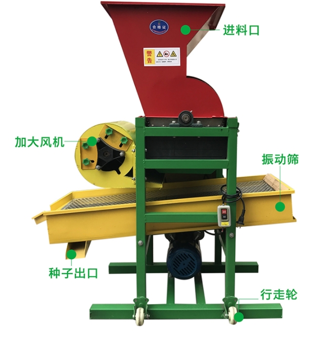 本机采用纹杆、栅条、凹板、风机、重分选及二次提升机等几部分组成,结构简单紧凑、操作简便、性能稳定、安全。