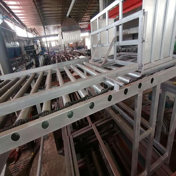 机体长度为6.6米,皮带上一排打有6个孔,错牙排列,使真空吸附时水泥料液能顺利的吸头聚苯板,保证水泥苯板成型后的防火阻燃效果