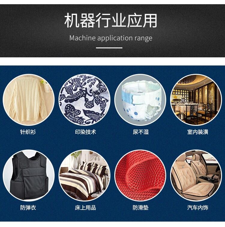 2.由于不用针,避免了缝合加工有断针残留在料内的情况,消除了隐患,属于新一代的环保产品;