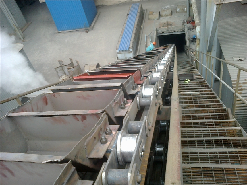 DS、SDBF型熟料链斗式输送机是我公司在引进国外先进技术的基础上,严格参照国际ISO2140-1975标准,自行优化设计并批量生产的成熟型产品。本机型布置形式分水平、垂直倾斜(倾角度≤60°)二种,适合输送各种粉状、块状松散物料,如水泥熟料、出炉焦炭、铁矿渣、矿沙石、石灰石等温度≤600°的高温散料。共耐热性、耐腐蚀性及稳定性优于鳞板式输送机及其它输送设备。单机输送长度可达150米以上,长距离输送物料容重可达2000kg/m3, ,该设备在运行过程中同比其它输送设备可节电50%以上,是冶金、焦化、建材、化工等行业最理想的输送设备之一。