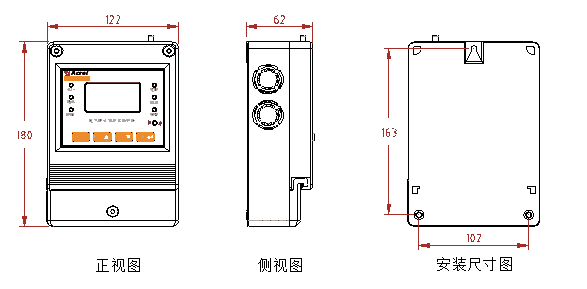ASCP200-1 型限流式保护器的外形与安装尺寸(单位:mm)如下图所示。
