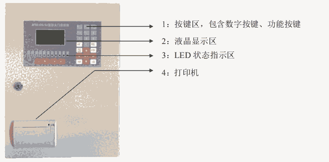 AFRD100/B2 型防火门监控器(以下简称监控器)通过二总线与多个防火门监控模块相连,构成集散式防火门监控系统。监控器能实时接收处理各路监控模块发送的断路、短路、故障信号,同时在液晶屏幕上显示,当发生断路、短路及通讯故障时,监控器能发出声光故
