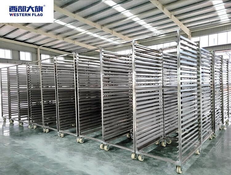 一、将切好的红薯放入烘盘里了,做到厚度均匀,摆放整齐就可以了。然后将托盘插入物料车,推进西部大旗番薯干烘干房,启动烘干程序。