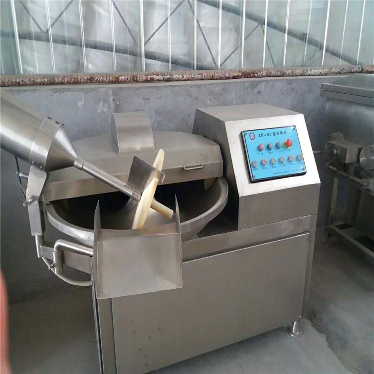 斩拌机作为现在肉食品加工厂家选择的食品加工设备,在工作时要注意不能再锅内防止杂物,要保证锅内的干净整洁,如果在上料时发生堵塞不要用手进入转锅内按料,否则会碰到转动的刀发生危险,如果转锅电机发生明显超载,此时建议斩拌机采用低速并将刀速降低。为了避免斩拌机内出现肉料卡塞现象,在加料时不要一次加料过多,操作中,还要适当加食用水。注意防潮,特别是配电箱,不要用水高压冲洗。