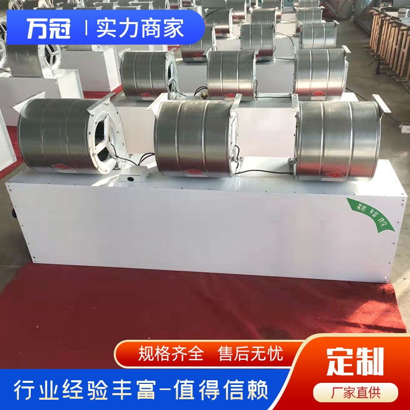 4、机组安装好后,应首先进行试运行,检查风机电机接线是否正确和可靠,以免发生短路烧损电机,并注意叶轮旋转方向是否正确。