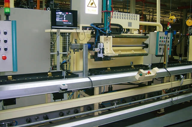 汽车天窗装配线实现了铆接、涂胶(机器人涂胶)、链条总成装配、末端盖装配、电机装配、遮阳板总成、排水槽总成装配、挡风条总成预装配、玻璃总成和挡风条装配、测试等的全自动化。