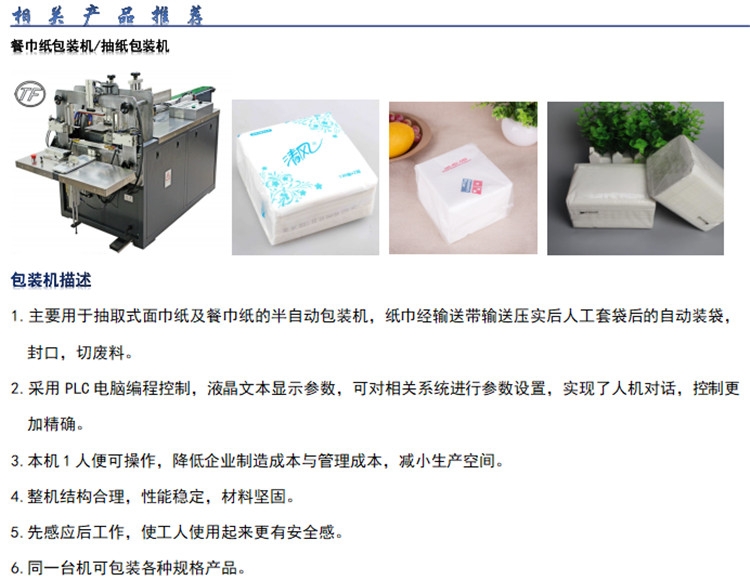 方形餐巾纸设备/正方形餐巾纸加工设备/一次性餐巾纸自动化生产设备的功能及特点: