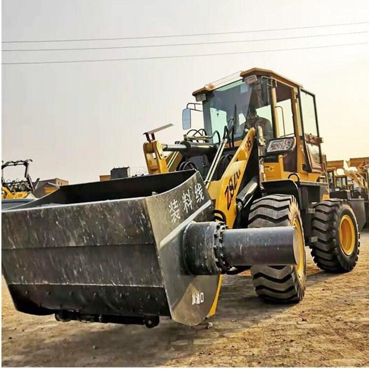 搅拌机作业时工作装置应能:当转斗油缸闭锁、动臂油缸举升或降落时,连杆机构使铲斗上下平动,以免铲斗倾斜而撒落物料;当动臂处于位置、铲斗绕动臂铰点转动进行卸料时,铲斗倾斜角不小于45°,卸料后动臂下降时又能使铲斗自动放平