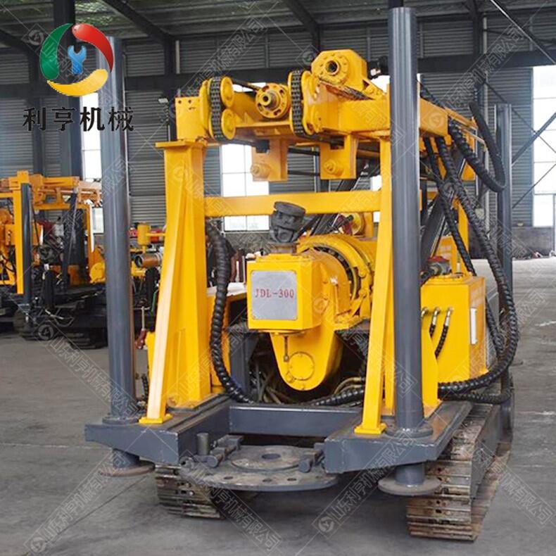 JDL-300型钻机是一种集水钻、气钻于一体的机械顶驱钻凿设备,解决了土层气钻空气潜孔锤钻进困难,坚硬岩石层、砾石、卵石层水钻泥浆钻进施工效率低的问题,水气两用钻机适应各种地层,打井和地质勘探钻取岩芯效率高。