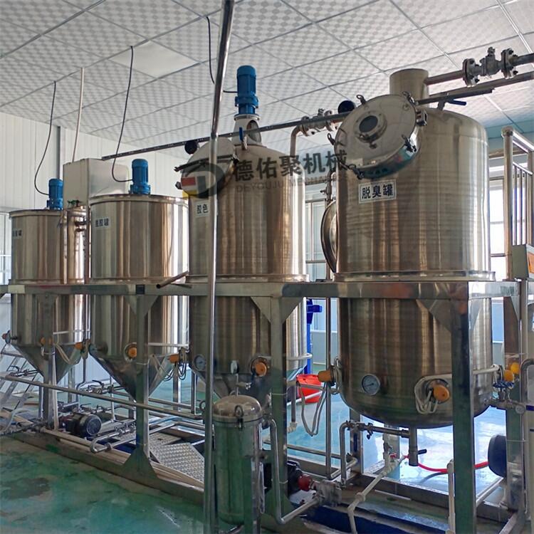 精炼设备,生产香榧油设备,德佑聚赤果油精炼设备,炼制玉榧油机器,野极子油炼油机是用于提高压榨油品质的设备,经过脱酸、脱胶、脱色、脱臭等工艺后,使压榨油的过氧化值、气味等指标达到国一标准,即食用油质量标准。