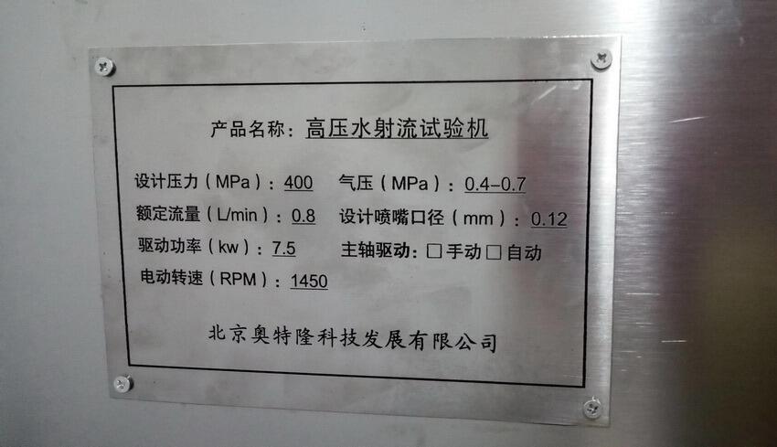 型号:ATL1-7.5,额定功率:7.5/10(KW/HP),压力:400MPa,流量:0.8L/min,这款超高压水射流加挂六轴智能机器人或平面数控切割平台,可广泛应用于汽车内饰件切割,航空内饰件的切割,包装业食品制造业,皮革产品研发生产,以及科研院所的实验装置等。