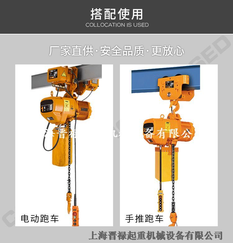 环链电动葫芦安装使用:葫芦单梁、桥式起重机、门式起重机、悬挂起重机上可以配单梁工字钢使用,也可以配双梁小车使用。因此,电动葫芦是工厂、矿山、港口、仓库、货场、商店等常用的起重设备之一,是提高劳动效率与改善劳动条件的必备机械。