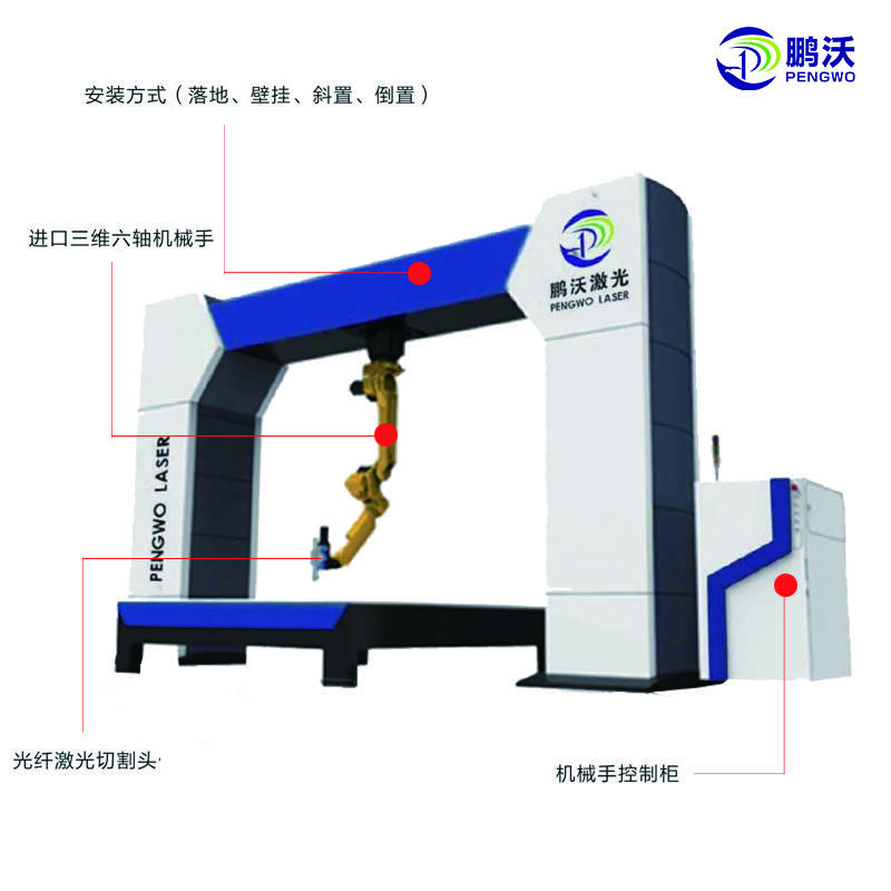 尖端光纤激光器与数字控制技术完美融合,代表着先进的激光切割水平;机械结构采用进口机械手,六轴联动,将激光束引导装置完全集成在机器人手臂中,将稳定的激光和运动的机器人手臂的优势相结合,可实现三维空间内任意曲线和特定曲线的加工,操控方便,智能化程度高,大大减少了周期时间,保证了设备的高运行速度、高精度及可靠性;