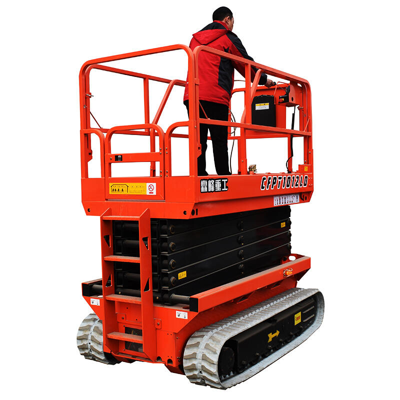 履带式剪叉升降平台是一种可以在泥泞的道路上、草地、砾石路、浅水道路等复杂路况下自由行驶的自行走剪叉式升降平台,自动调平液压支架可以使剪叉能够在崎岖不平区域安全升降,具有高效的性能、极低的故障率和灵敏的调整能力,广受用户喜爱,广泛应用于建筑工地、建筑物维修、工厂日常高空作业维修等各种高空作业。