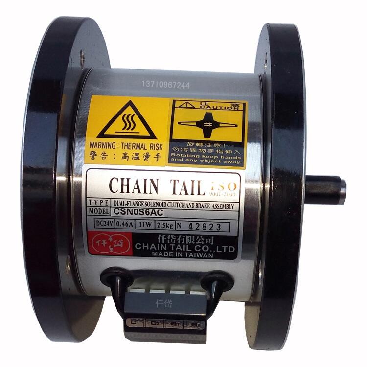 上壳机电磁离合刹车器CSN0S6AC CSN2S5AA,属于双法兰电磁离合刹车器,短款型,可直连电机使用。该电磁离合刹车器组合体设计上更节省空间,搭配了散热电枢风轮,散热效果更佳。台湾仟岱CSN系列产品工作电压为DC24V,扭力为5.5-170NM,功率11-45W,具有尺寸小,扭力大,安装调节方便,响应快速,低磨砂等优点。