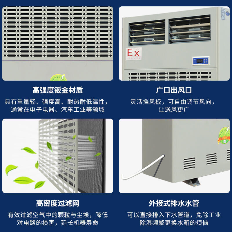 存在ⅡA、ⅡB级,T1~T4组可燃性气体、蒸汽与空气混合形成的爆炸危险场所,出现或可能出现爆炸性气体混合物的场所。本机组风为冷却介质的直接蒸发式冷冻除湿产品,用以解决以制冷/除湿为目的的特殊防爆空间场所的需求;如:武器库,厂房、制造车间、化学品仓库等。