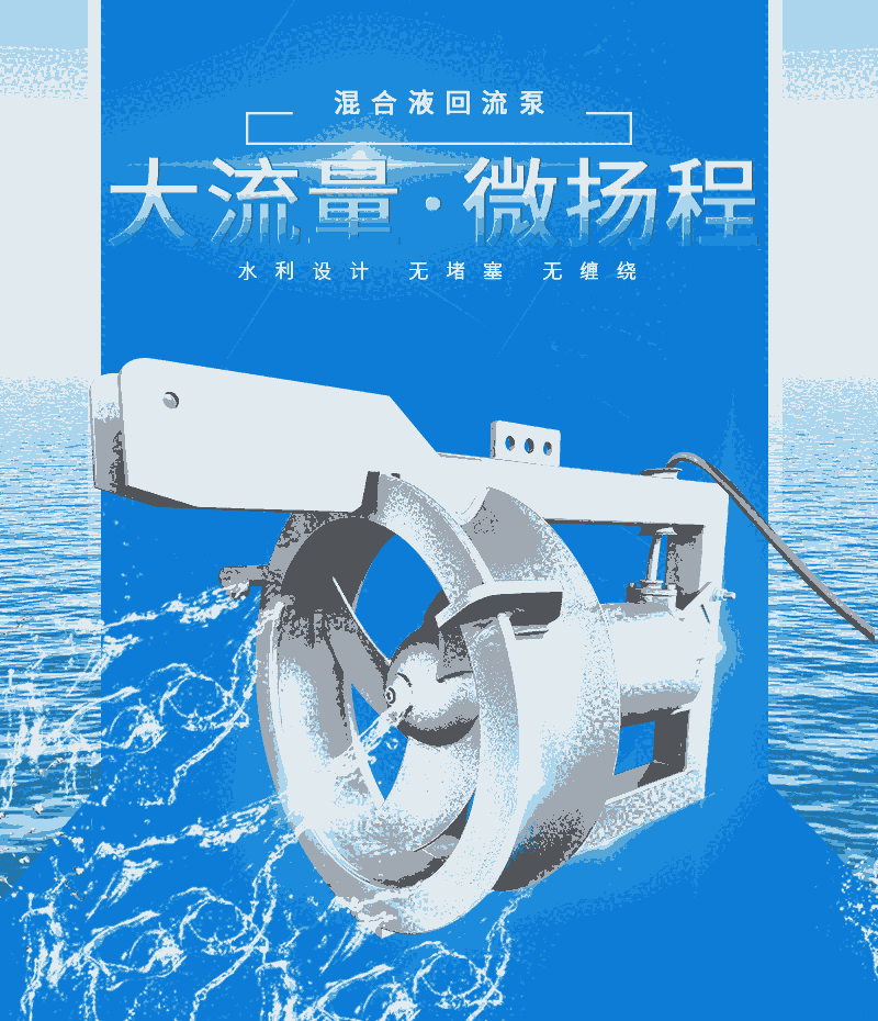 潜水回流泵应为成套装置,包括主机设备、安装系统和起吊装置。安装系统由方钢导杆、顶部固定件和底部连接法兰等组成,可自由调整回流泵的提升和下降,并可在不排空水池的情况下拆卸和安装回流泵。回流泵装在一个可在导杆上滑动的支架上作为一个整体,该支架能够承受回流泵的整个重量和运行所产生的所有推力。导流环与穿墙管连接的一面设置有法兰和自耦卡口。连接法兰焊接在池壁的穿墙管上,包括在回流泵自动就位时起连接作用的自耦装置,以及固定导轨的插座。回流泵能在导轨引导下从池顶与连接法兰之间自由滑动,下降到位后通过导流环上的自耦卡口和连接法兰的自耦装置,自动稳固地与穿墙管连接。