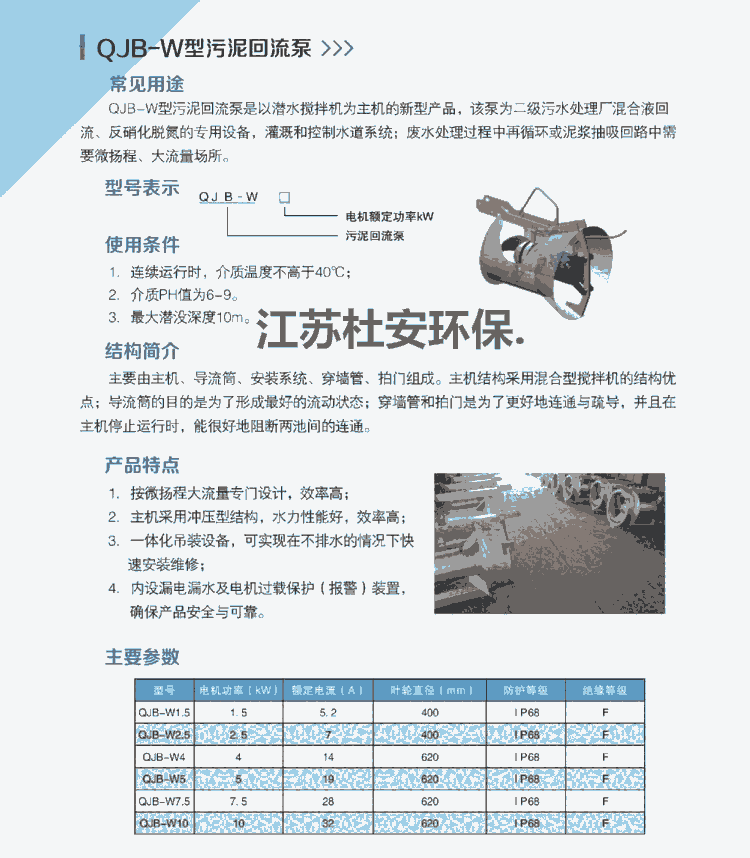 杜安环保QJB-W污泥内回流泵安装:
