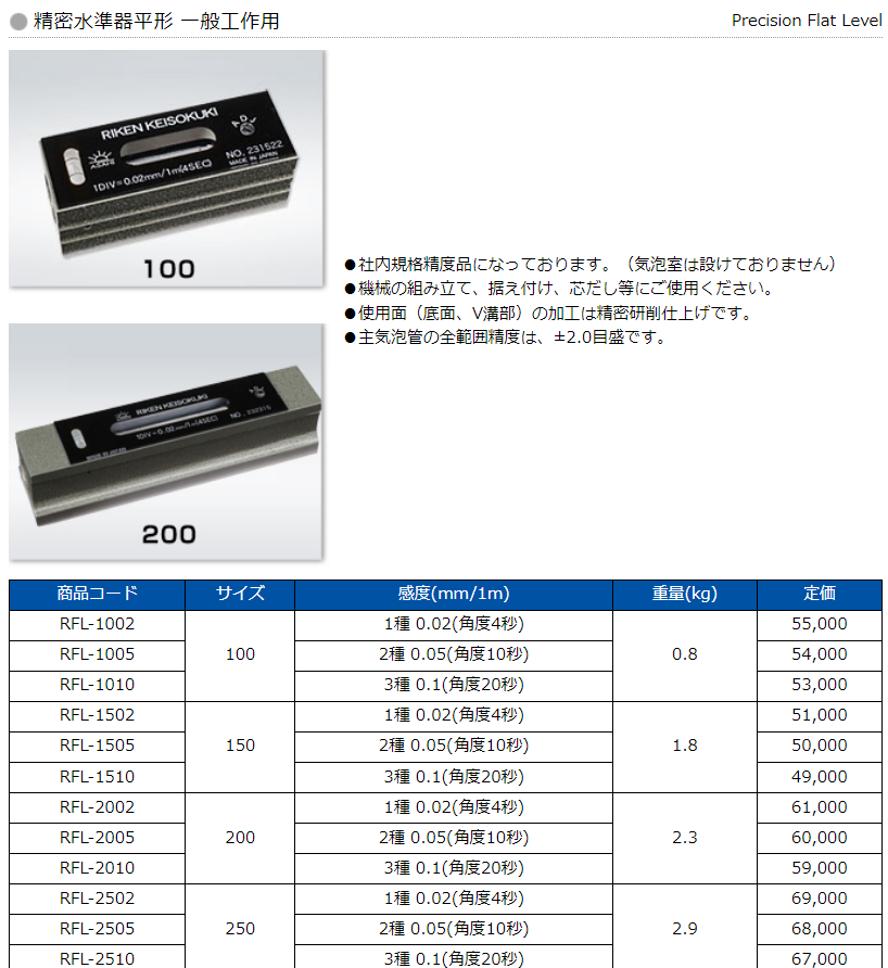 RIKEN理研 300*0.02条形精密水平仪 RFL-3002 3005 3010