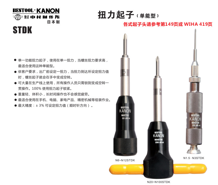 日本KANON 中村扭力起子 CN200STDK 扭力螺丝刀 单能型扭力批头现货