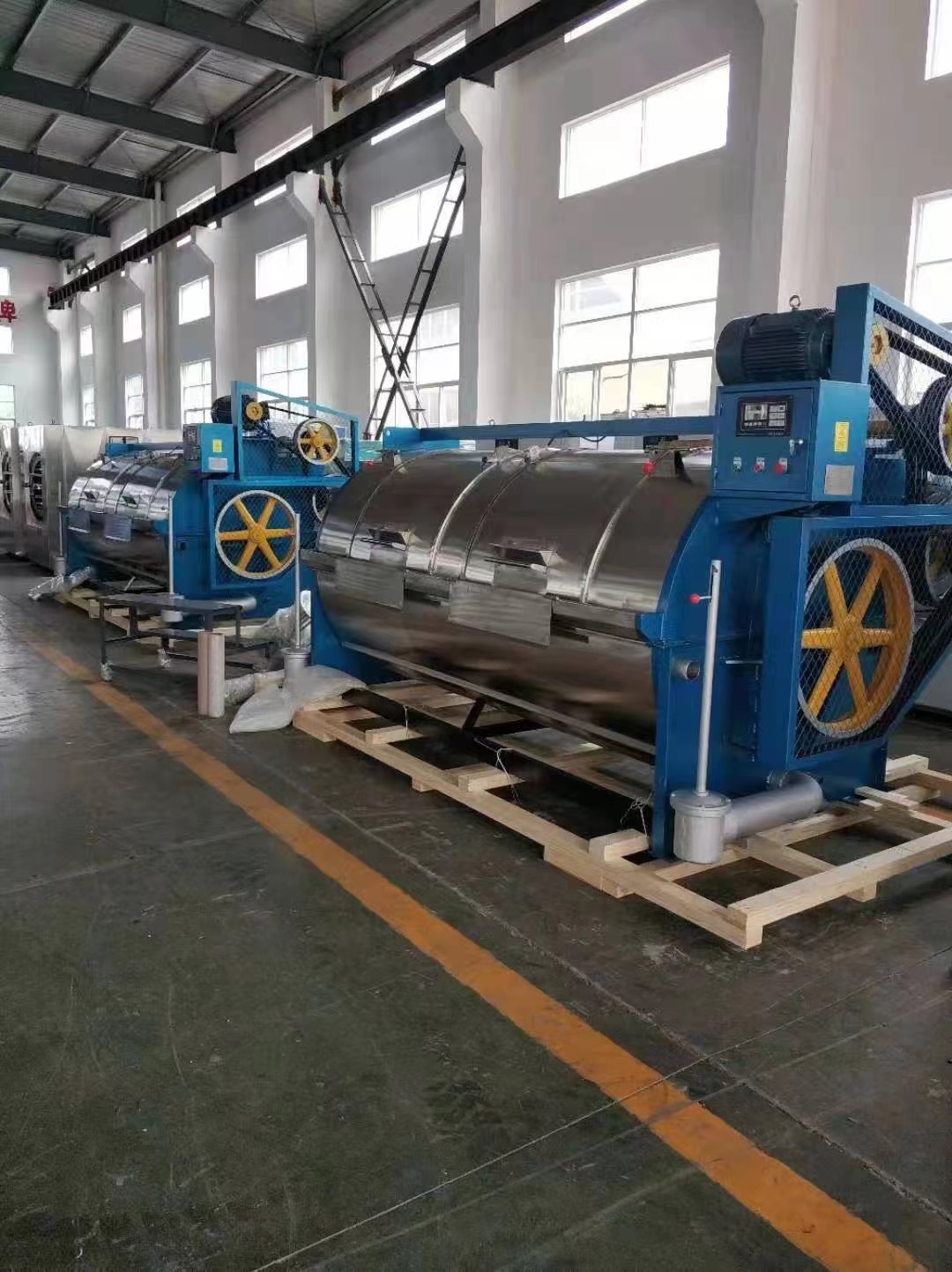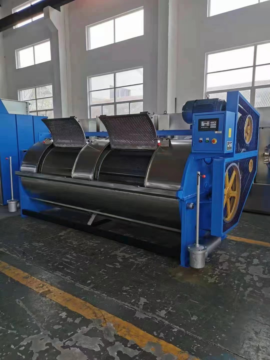 工业水洗机由内筒、外筒、电机、支撑总成、传动总成、电器总成组成。结构合理、安装使用方便;由顶置电机、三角胶带、带动传动总成,使内筒作正反转运转,通过织物与织物、织物与内筒壁的相互摩擦,达到洗涤效果;该洗涤设备内置过热、过载装置、定时装置、正反转控制装置;外筒门设有安全装置,若运行中门被打开,机器立即停止运转,确保机器、操作人员的安全。