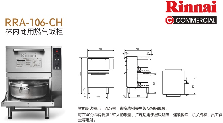 Rinnai林内燃气蒸饭柜RRA-106CH全自动燃气饭车进口蒸饭箱煮饭柜