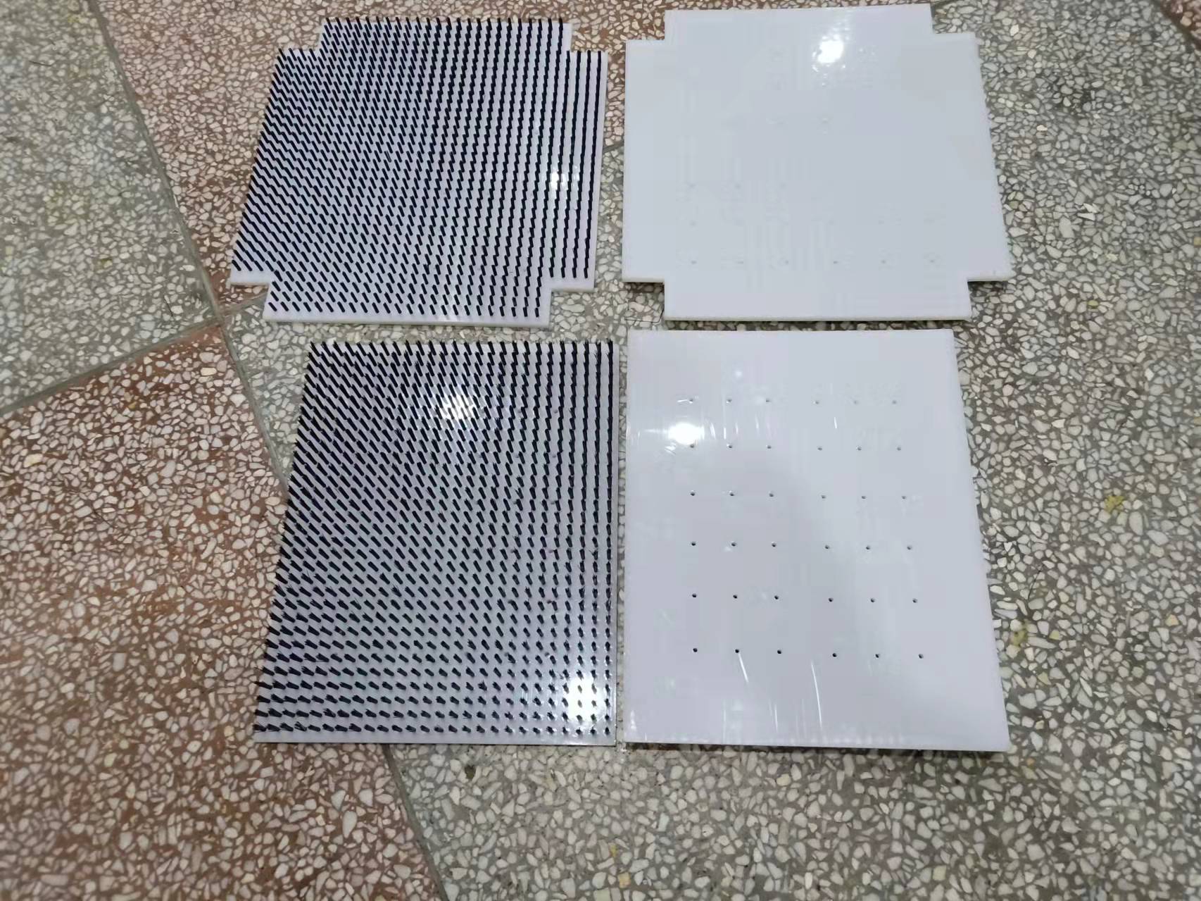 黑色pvc板材表面附有一层保护膜,植毛前将其去除,便于植毛。此处以标准尺寸1000*1000mm。厚15mm.也可以按照需求制作任意尺寸形状,比如圆形、半圆形、三角形,异形等。