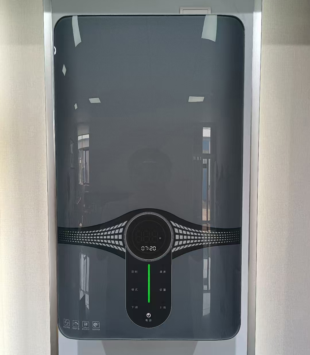 1、该款匠奥电壁挂炉采用曲面屏设计,弧度好,美观大方;