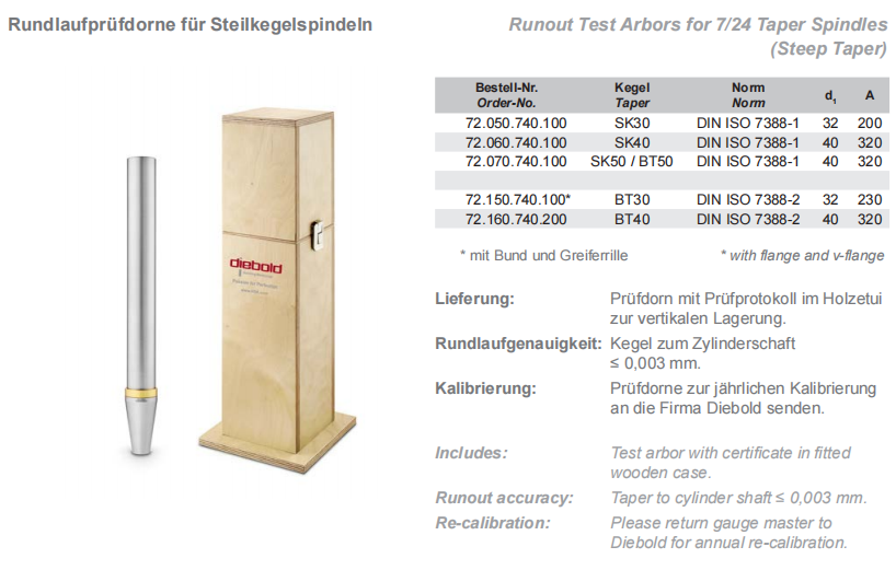 德国戴博DIEBOLD主轴检测棒SK50机床专用跳动检测棒现货直发