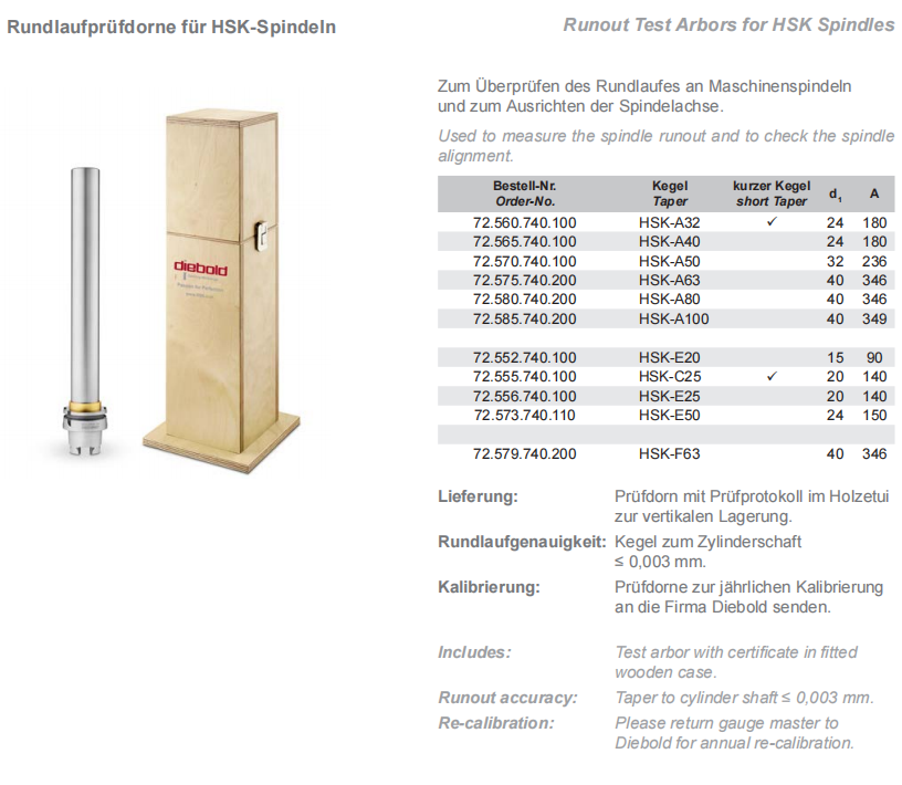 德国Diebold HSKA32戴博检棒五轴机床检测棒主轴跳动检测棒现货