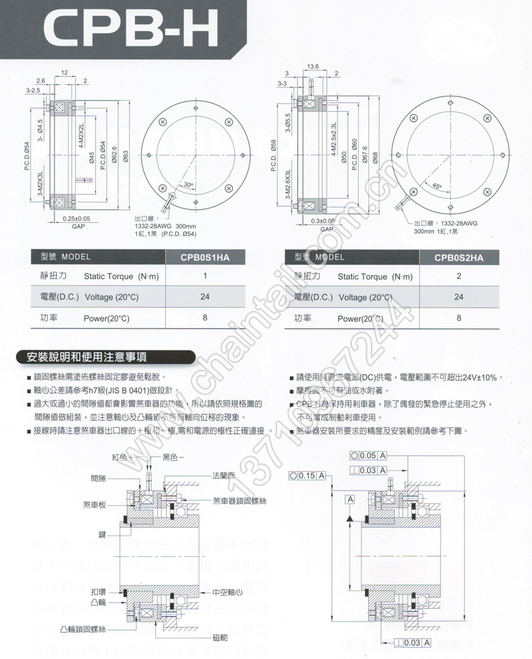 CPB-H电磁式永磁断电刹车器-中空轴型,产品型号有CPB0S1HA与CPB0S2HA。