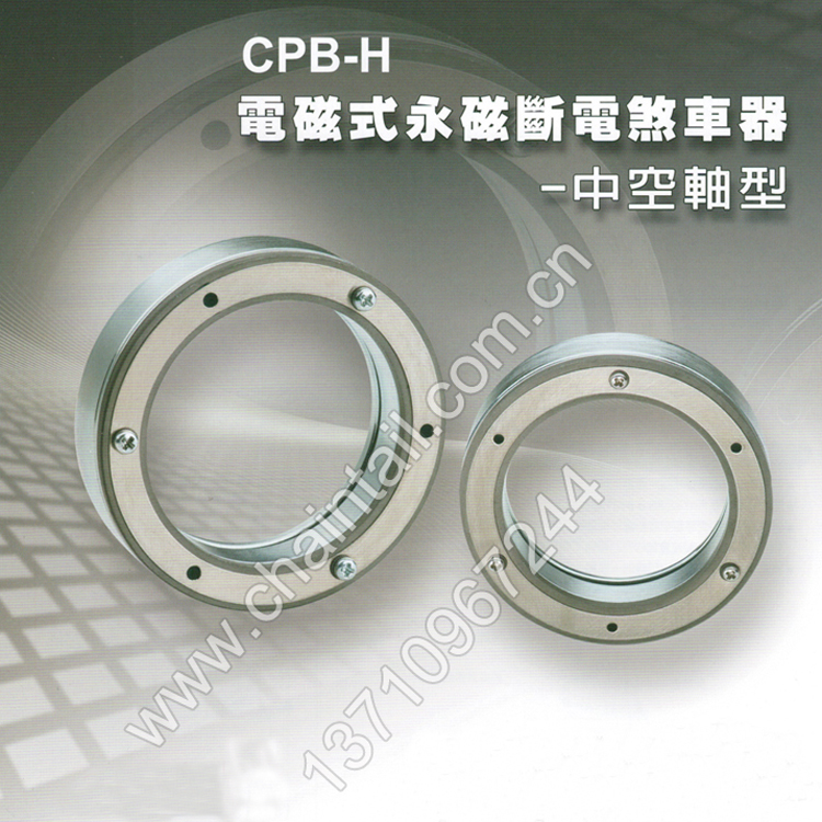 台湾仟岱有限公司生产的CPB-H电磁式永磁断电刹车器,是一款利用永磁铁作为扭力来源的解决操持用刹车器。纤薄的结构与大内径的设计让刹车器可以整合安装于中空轴心的马达与小型机器人的关节。电线可从刹车器中心通过的特点亦为机构提供了弹性的配线空间。其无背隙及无空转扭力的优点,最适合使用于仪疗设备、机器人关节以及半导休设备等装置。