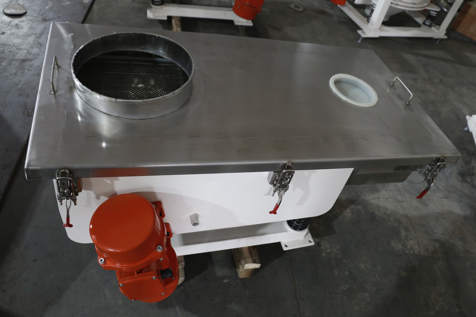 用于筛分粒料的双层振动筛,可以去除物料中过大的结块和过小的细粉,从而得到合格的颗粒物料。