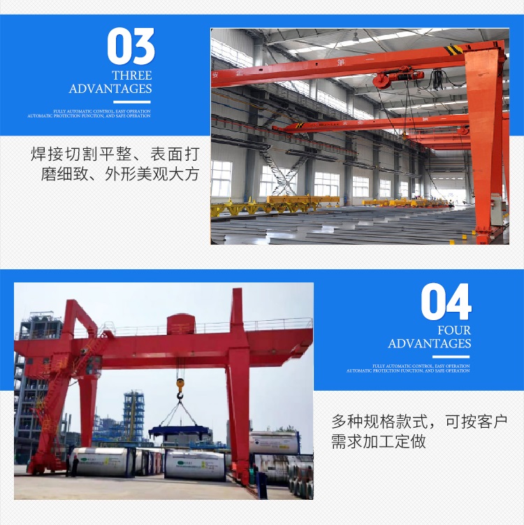 MHB型电动葫芦半门式起重机不宜在易燃、易爆的介质中或具有很大湿度腐蚀性气体的场所工作。也不适用于吊运熔化的金属、有毒物和易燃物的工作 。