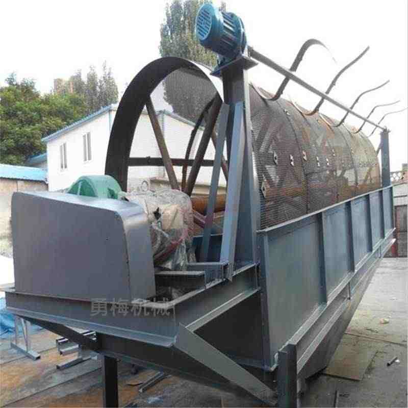 砂石矿场金属筛分设备有轴滚筒筛分机 17719958219 回笼筛电动机经减速机与滚筒装置通过联轴器连接在一起,驱动滚筒装置绕其轴线转动。当物料进入滚筒装置后,由于滚筒装置的倾斜与转动,使筛面上的物料翻转与滚动,使合格物料(筛下产品)经滚筒外圆的筛网排出,不合格的物料(筛上产品)经滚筒末端排出。由于物料在滚筒内的翻转、滚动,使卡在筛孔中的物料可被弹出,防止筛孔堵塞。