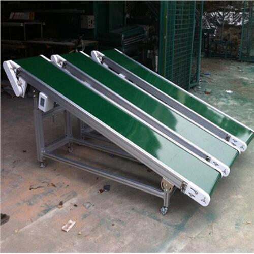 ?皮带输送线运用输送带的连续或间歇运动来输送各种轻重不同的物品,既可输送各种散料,也可输送各种纸箱、包装袋等单件重量不大的货物,用途广泛。输送带的材质有:橡胶、橡塑、PVC、PU等多种材质,除用于普通物料的输送外,还可满足耐油、耐腐蚀、防静电等有特殊要求物料的输送。采用食品级输送带,可满足食品、制药、日用化工等行业的要求。结构形式有:槽型皮带机、平型皮带机、爬坡皮带机、转弯皮带机等多种形式,输送带上还可增设提升挡板、裙边等附件,能满足各种工艺要求。输送机两侧可配工作台、加装灯架,可作为电子仪表装配,食品包装等装配线。