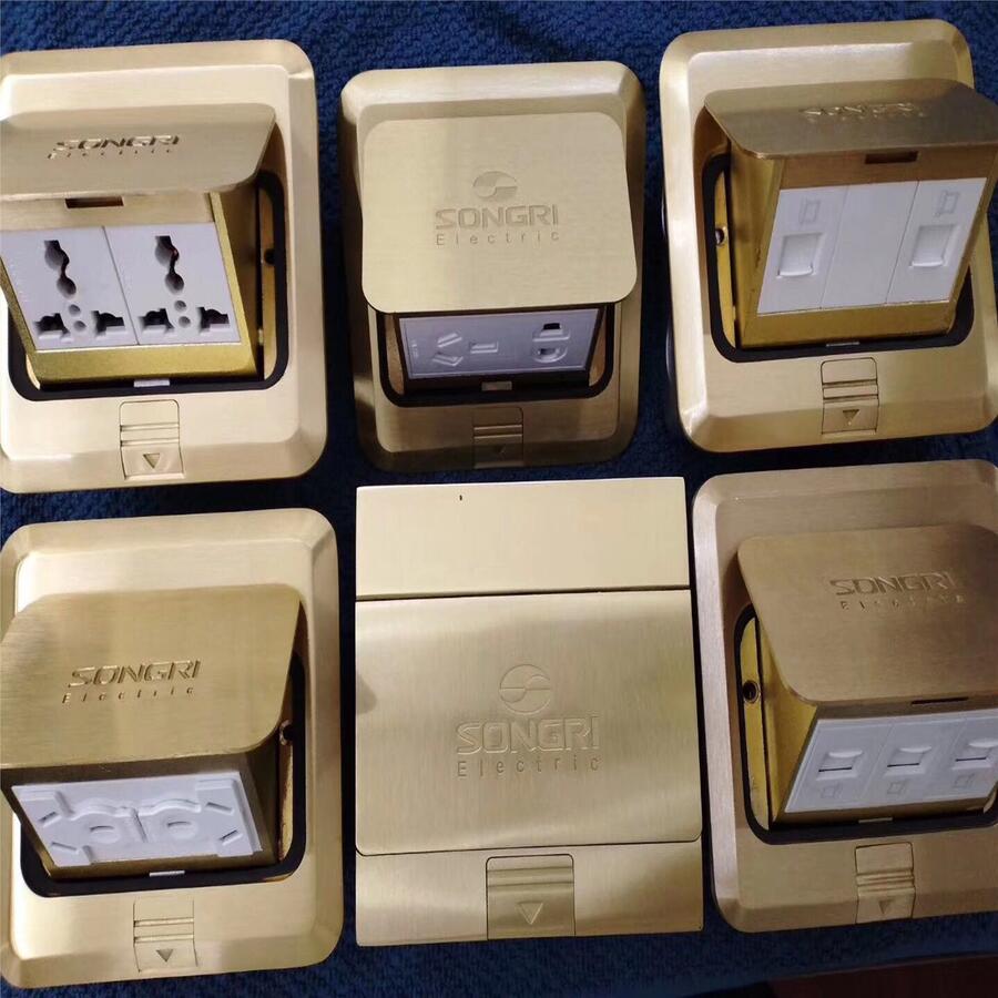 上海松日86型纯铜地面插座防水隐藏式五孔地插电源网络地插