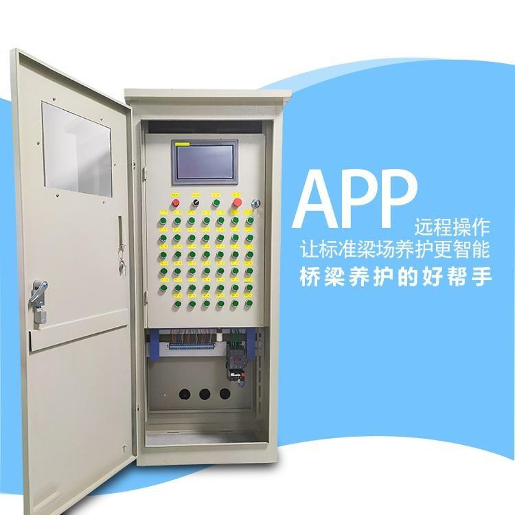 大屏幕液晶显示,中文界面,数字键盘操作,简单明了的操作界面,实现各路喷头的定时,喷淋时间,水量的设计等参数设计。劳动强度降低。同等数量的预制梁,根据梁长通常需配备8~12人,而采用自动喷淋系统需要2人安装和拆除支喷淋管道。主水管一般采用2寸PE管或PP-R管,分支水路一般采用1寸PE管,每个分支水路安装有一台电磁阀,电磁阀通过软线接入智能控制箱,并通过24伏交流电驱动工作。伸缩式雾化洒水喷头预埋施工。喷淋系统保压时间,不受人为影响。
