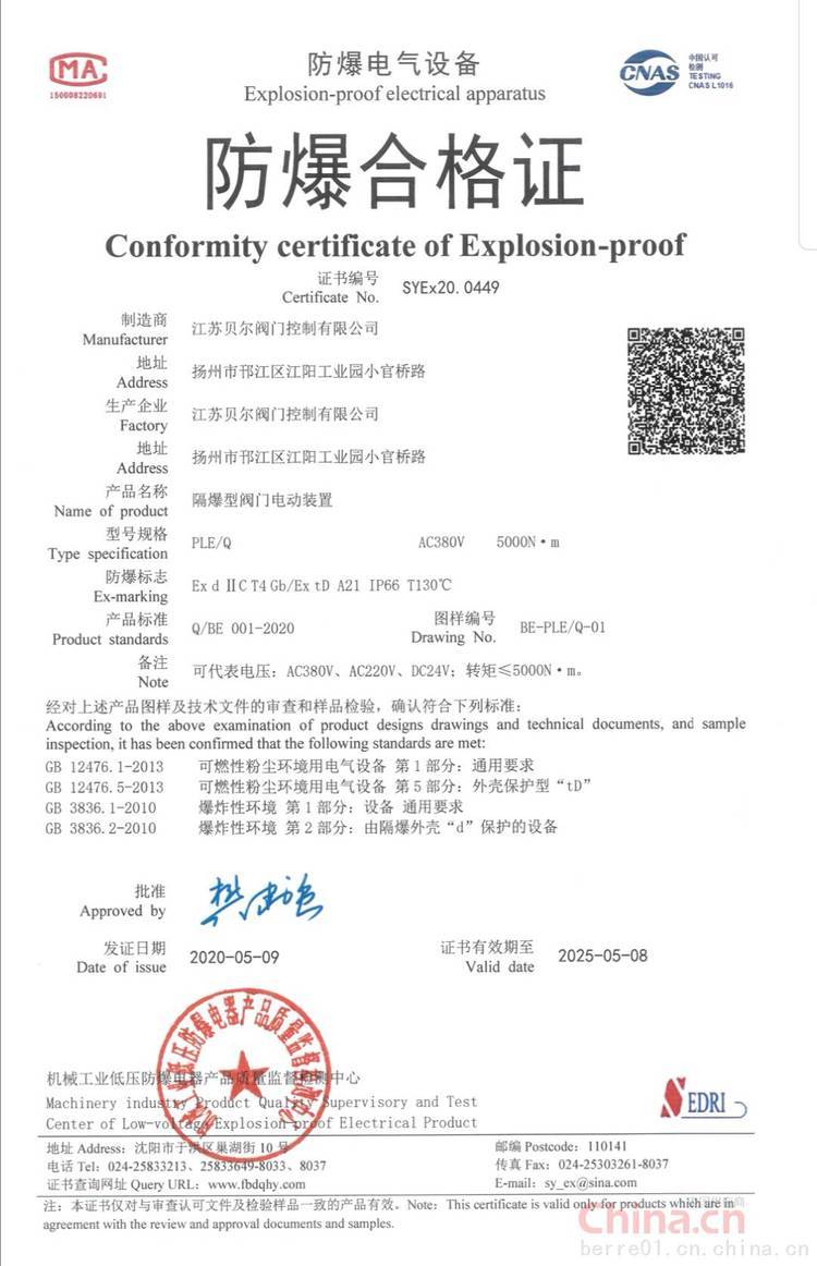 5、检查电动执行机构型号,参数是否符合现场安装需要和技术要求;