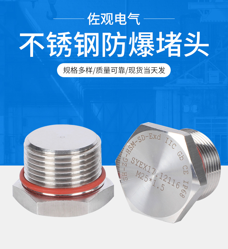 304防爆堵头M20*1.5不锈钢盲堵NPT1/2实心六角闷盖BPT塞头丝堵G1/2 防爆等级 | ExdIIC Gb | ||