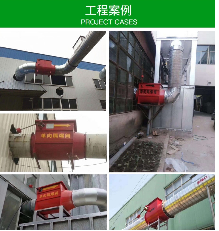 4、维护成本低 5、应用于除尘器的入口管,旋风分离器及其他粉尘工艺管道上 6、阀瓣为常开设计