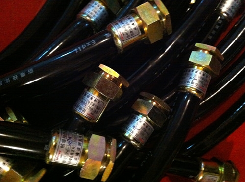 挠性管由金属编织橡胶护套﹑内衬﹑外套﹑接头螺母﹑内外螺纹接头等件组成。接头螺纹分G1/2﹑G3/4﹑G1﹑G11/4﹑G11/2﹑G2﹑G21/2及G3等几种,结构型式有两端内螺纹﹑两端外螺纹及一端内螺纹一端外螺纹三种。隔爆型结构。