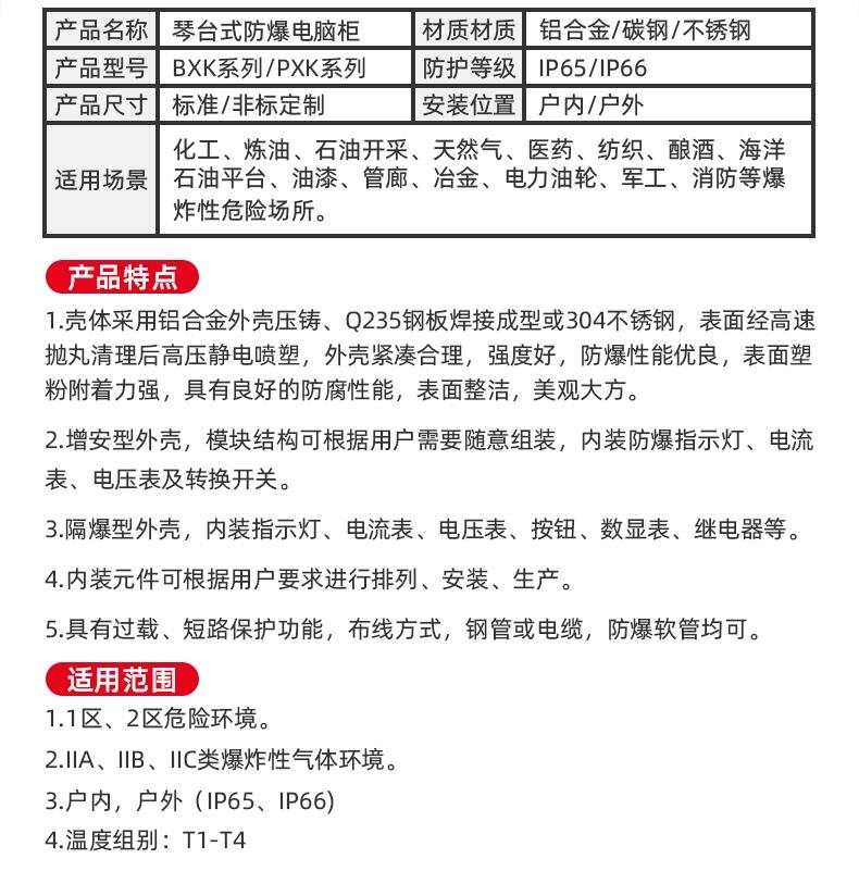1.适用于爆炸性气体环境1区、2区危险场所;