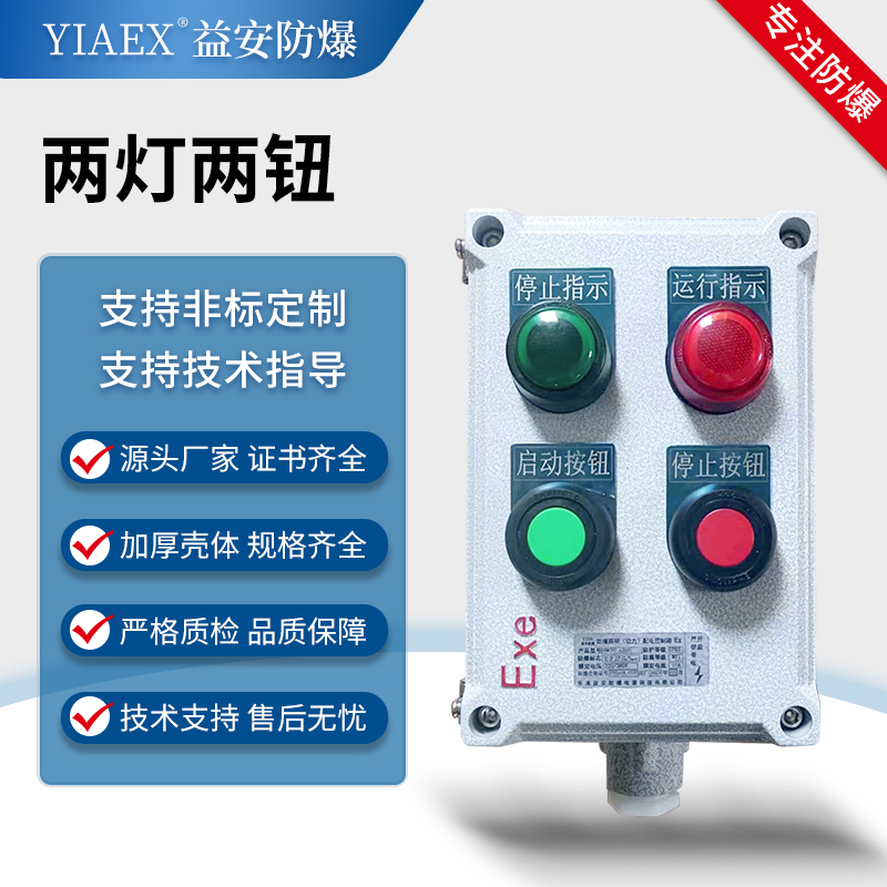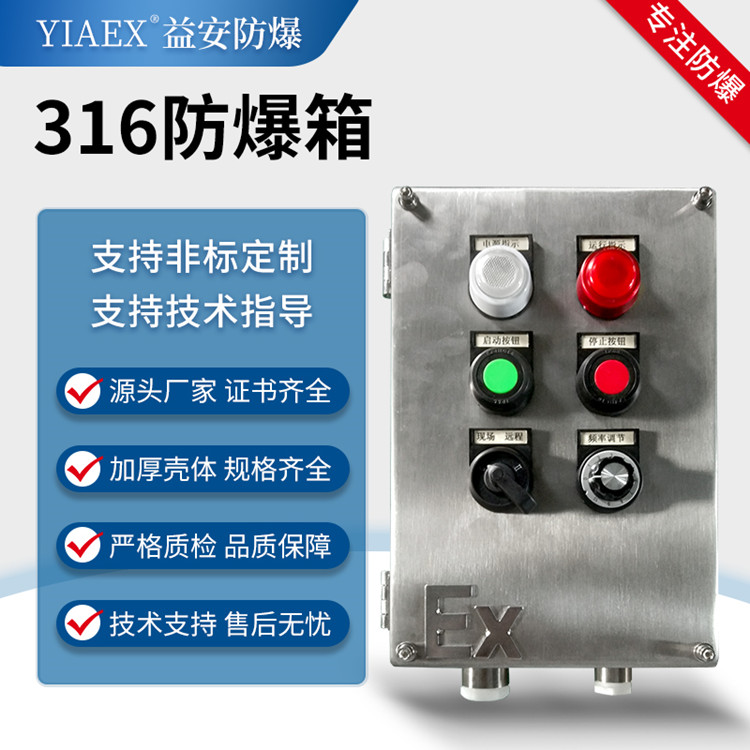 益安防爆控制箱,可以定制碳钢或者不锈钢材质防爆箱,立式或者壁挂式安装,不锈钢指示牌,带合页翻盖设计,方便客户使用和接线,我公司为生产厂家直销,可根据客户要求定制防爆配电控制设备,防爆电流表、电压表、频率表等物料显示温控仪表等指数均可定做,产品质量可靠,外形美观。