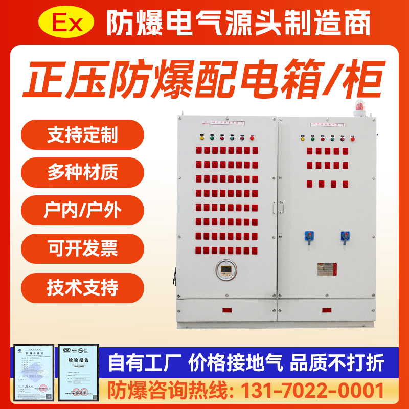 采用介质隔离点燃源的防爆措施。即:把用户所用的电器元件安装在一个充满正压洁净气体的柜体内,使外部环境中易燃易爆的混合性气体无法接触到电器元件在正常工作时所产生的电火花或危险温度,从而达到电器防爆的目的。