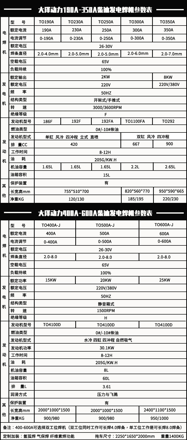 免费咨询高频500A柴油发电电焊一体机定制双工位TO500A野外焊接