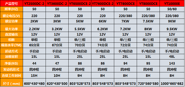 发动机型号 | YT2500DC-2 | ||